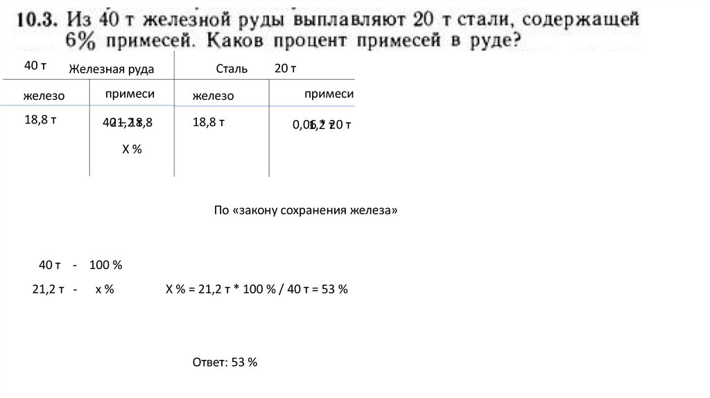 Х % = 21,2 т * 100 % / 40 т = 53 %