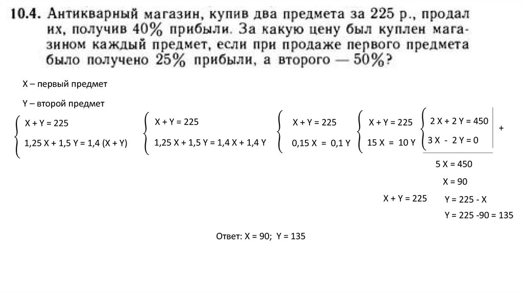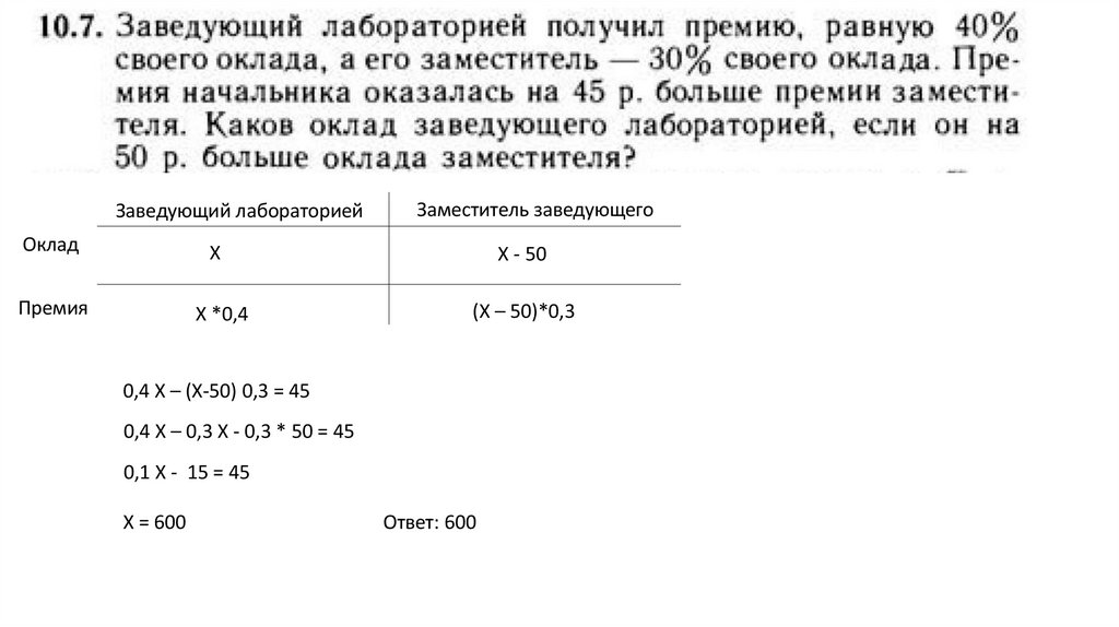 0,4 X – 0,3 X - 0,3 * 50 = 45