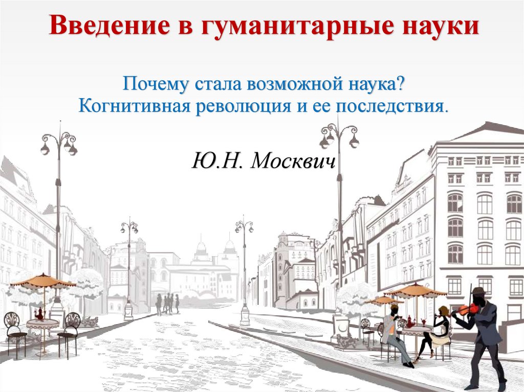 1. Введение в гуманитарные науки Почему стала возможной наука? Когнитивная революция и ее последствия. Ю.Н. Москвич