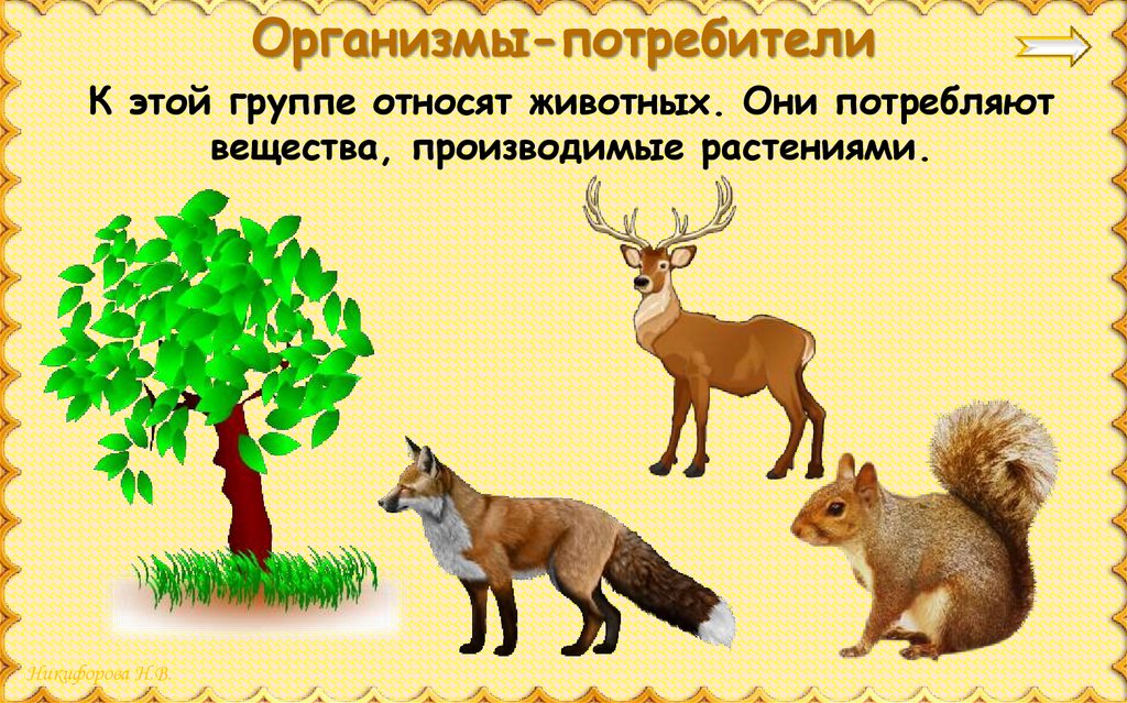 Организмы-потребителиК этой группе относят животных. Они потребляют