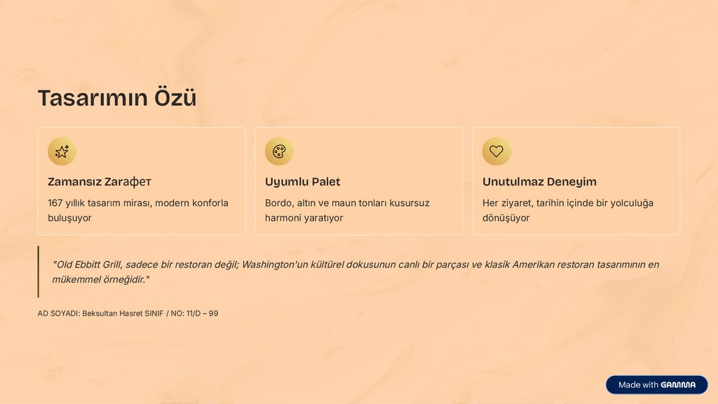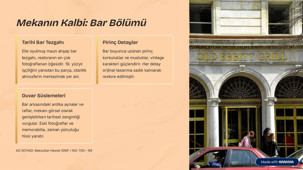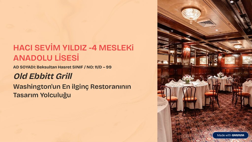 "Old Ebbitt Grill, sadece bir restoran de il; Washington'un kültürel dokusunun canl1 bir parças1 ve klasik Amerikan restoran tasar1m1n1n en