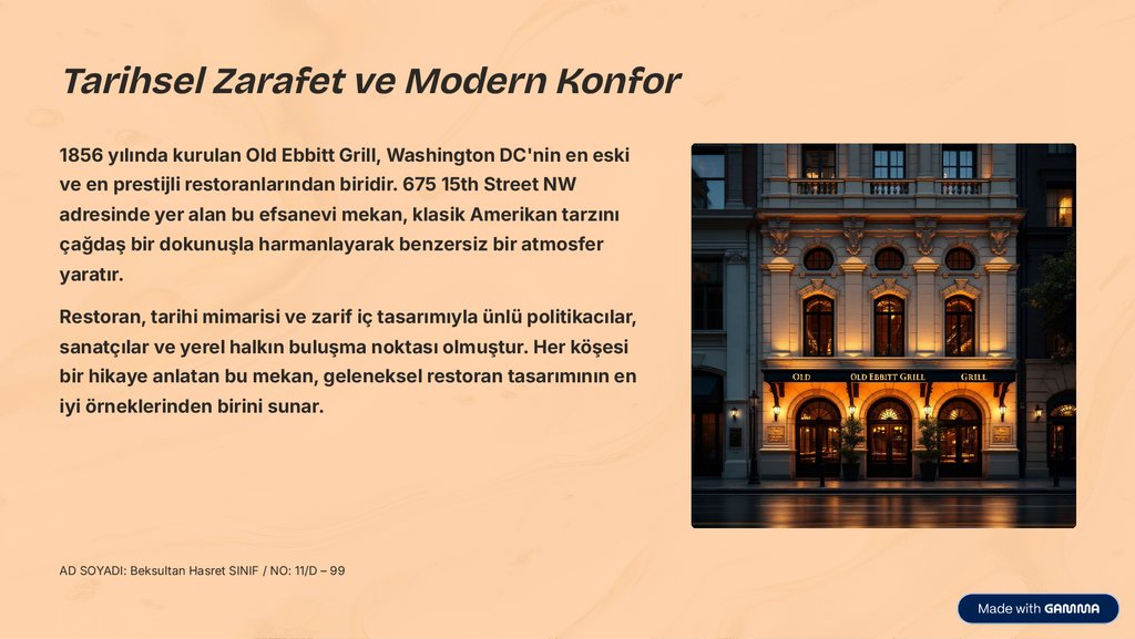 Tarihsel Zarafet ve Modern Konfor1856 y1l1nda kurulan Old Ebbitt Grill, Washington DC'nin en eski