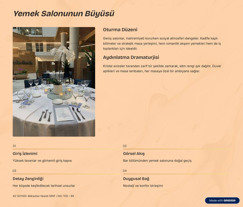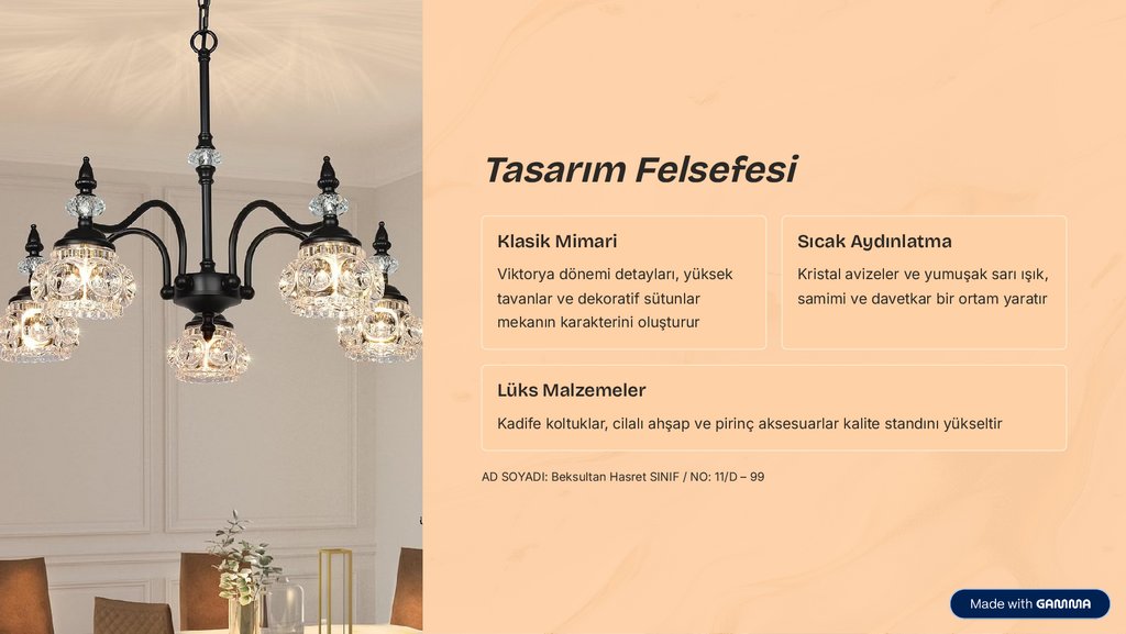 aplikleri ve masa lambalar1, her masaya özel bir ambiyans sa lar.