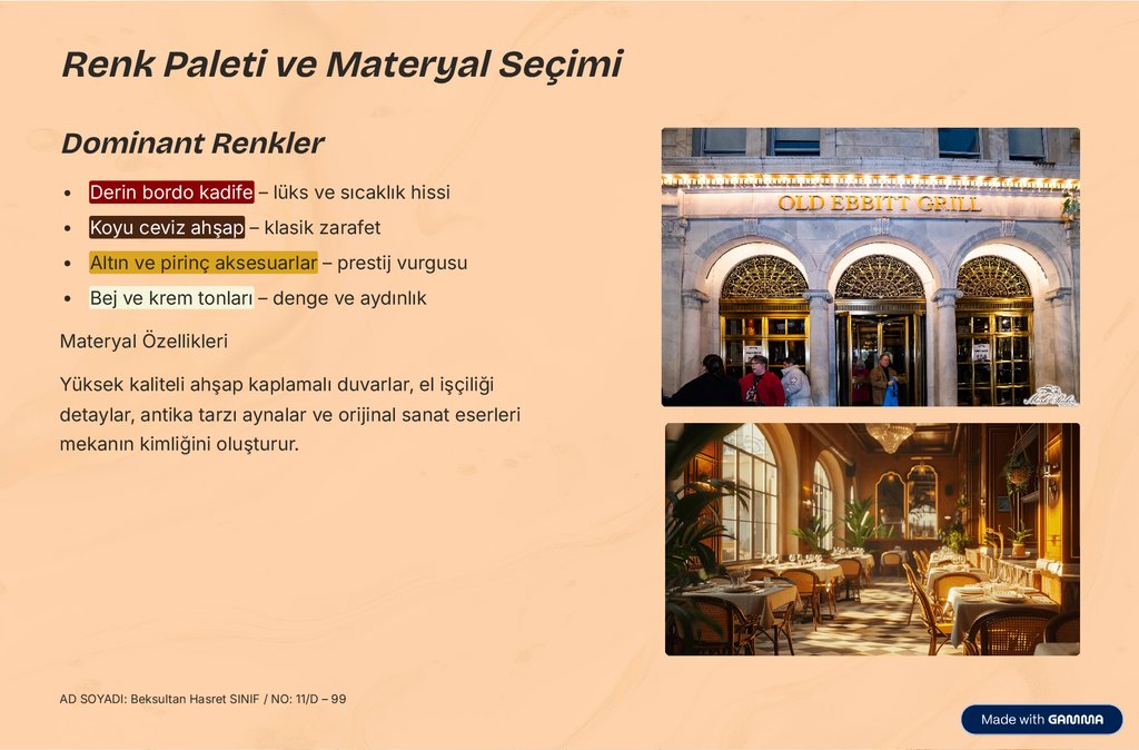 Renk Paleti ve Materyal SeçimiDominant Renkler
