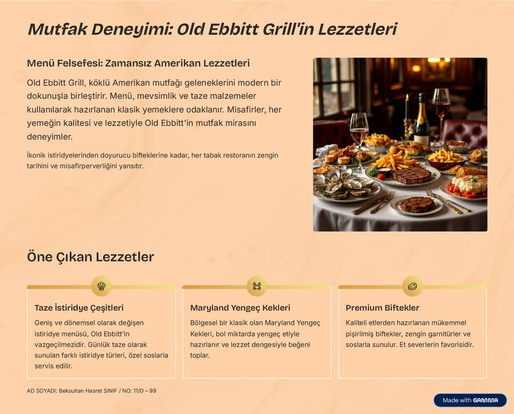 yeme in kalitesi ve lezzetiyle Old Ebbitt'in mutfak miras1n1