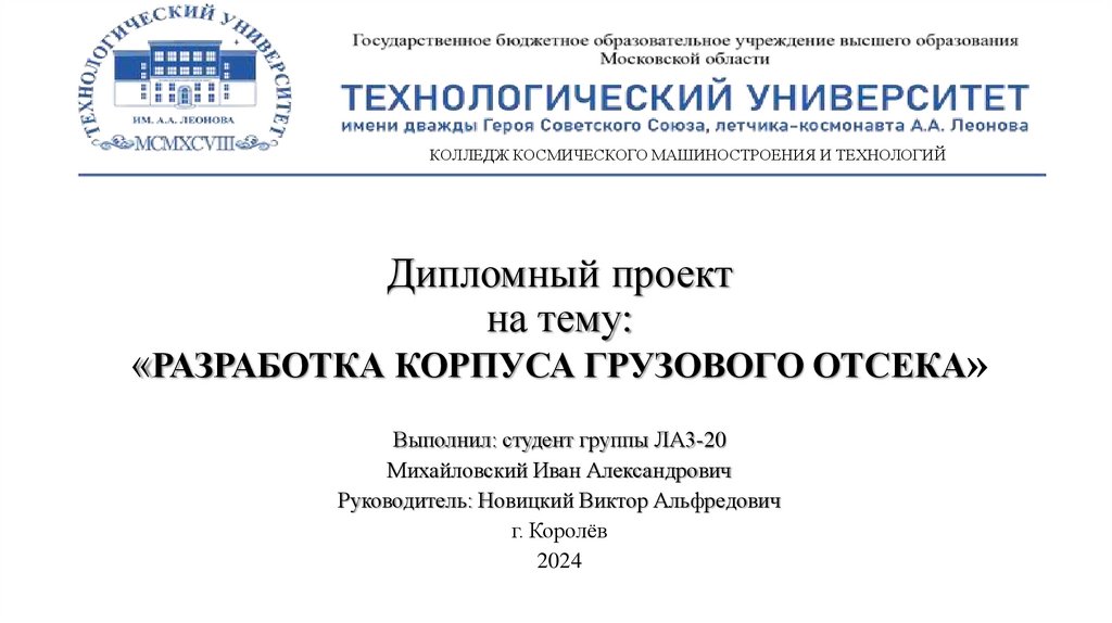 КОЛЛЕДЖ КОСМИЧЕСКОГО МАШИНОСТРОЕНИЯ И ТЕХНОЛОГИЙДипломный