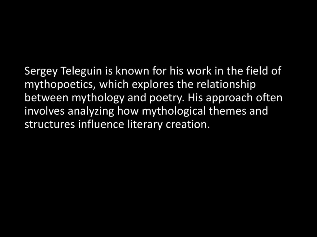 Sergey Teleguin is known for his work in the field ofmythopoetics, which explores the relationship