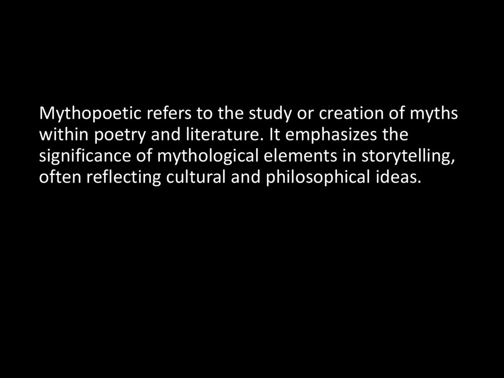 Mythopoetic refers to the study or creation of mythswithin poetry and literature. It emphasizes the