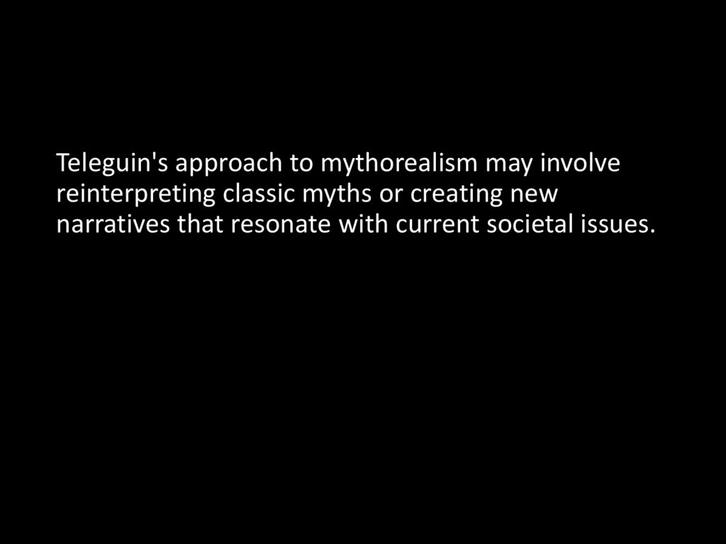 Teleguin's approach to mythorealism may involvereinterpreting classic myths or creating new