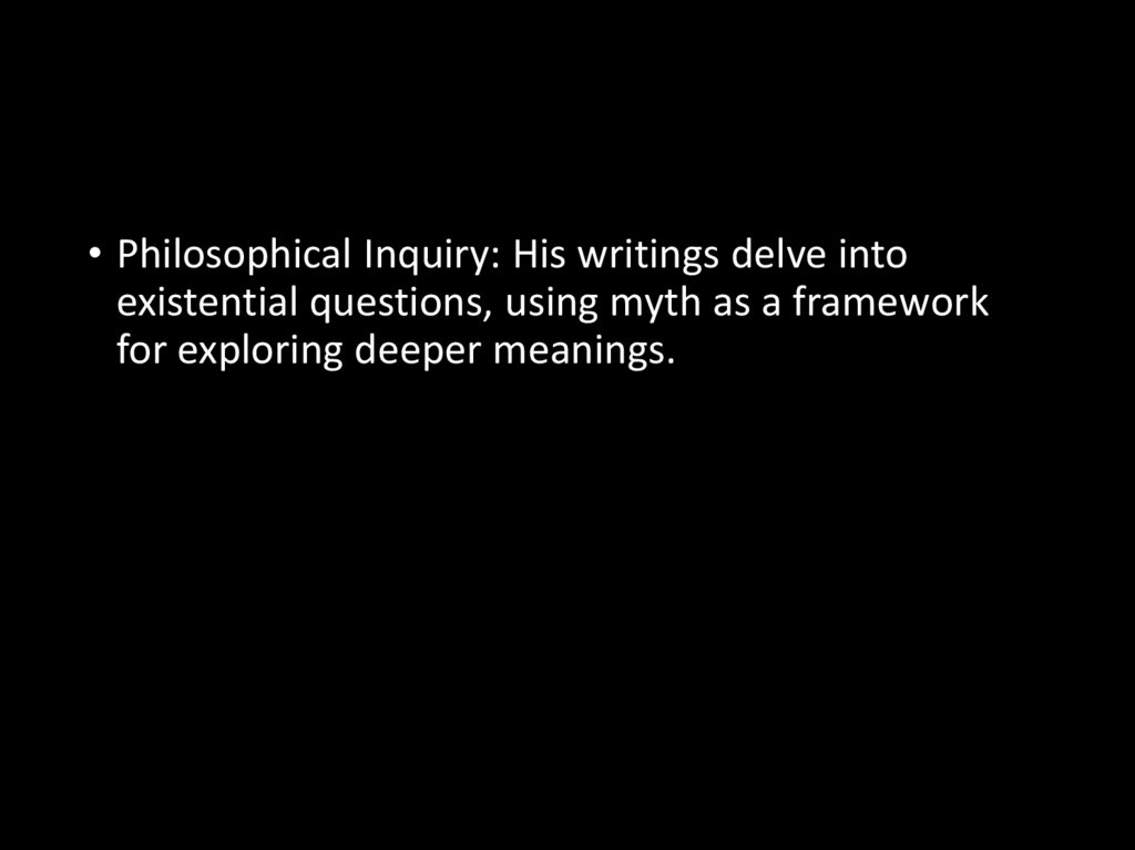 • Philosophical Inquiry: His writings delve intoexistential questions, using myth as a framework