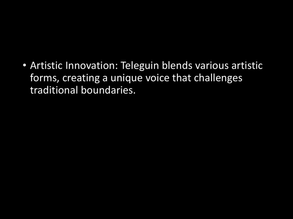 • Artistic Innovation: Teleguin blends various artisticforms, creating a unique voice that challenges