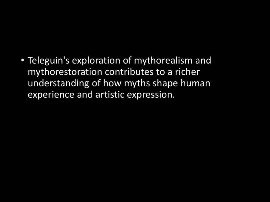• Teleguin's exploration of mythorealism andmythorestoration contributes to a richer