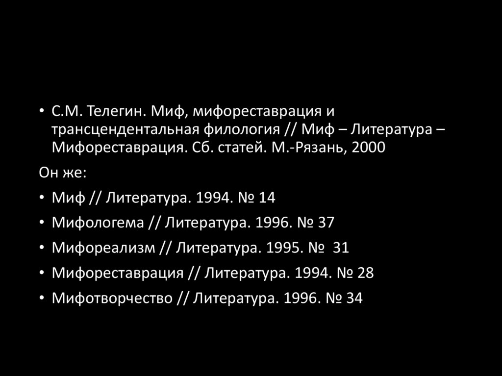 • С.М. Телегин. Миф, мифореставрация итрансцендентальная филология // Миф – Литература –