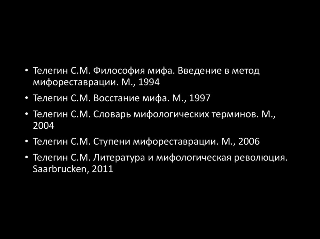 • Телегин С.М. Философия мифа. Введение в методмифореставрации. М., 1994