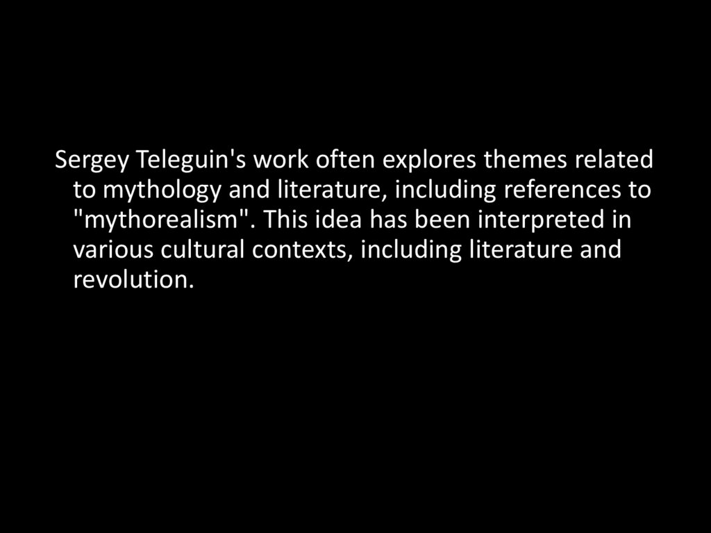 6. In summary, Sergey Teleguin's work on mythorealism likely delves into the intersections of myth, literature, and cultural