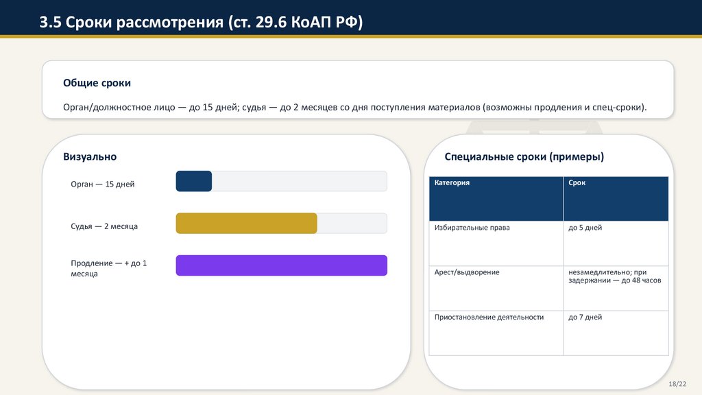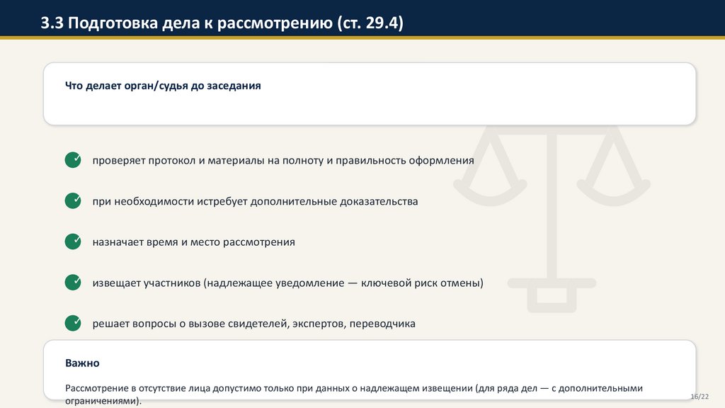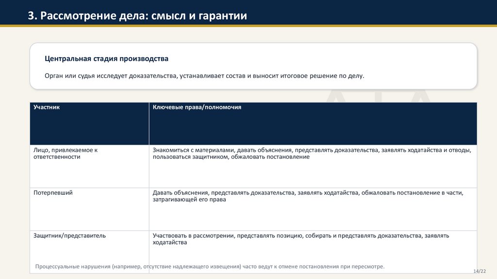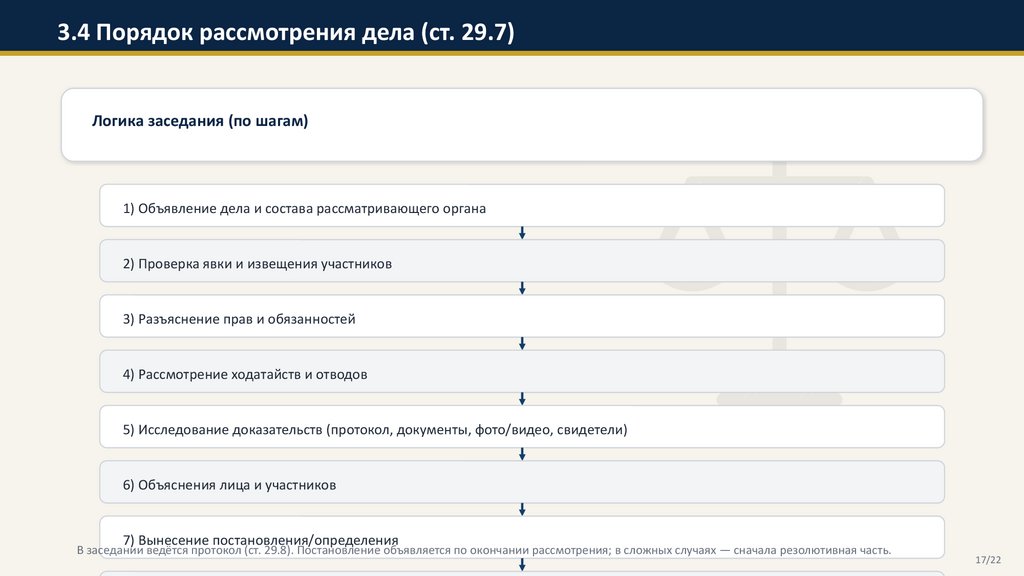 • Рассмотрение дела включает подготовку, заседание, соблюдение сроков и вынесение