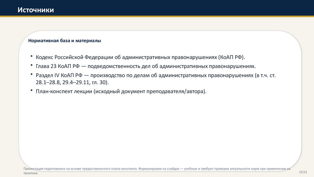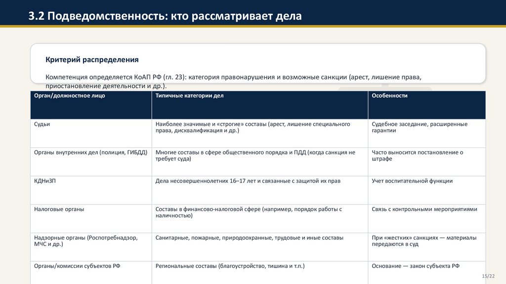 • Глава 23 КоАП РФ — подведомственность дел об административных правонарушениях.