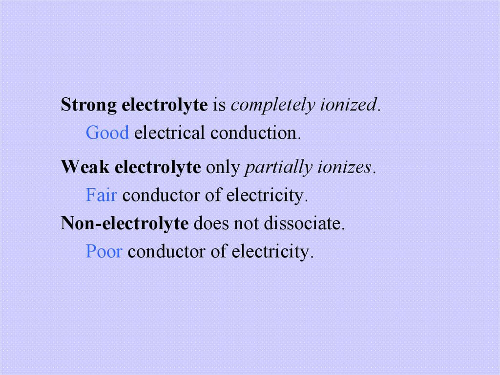 Strong electrolyte is completely ionized.Good electrical conduction.