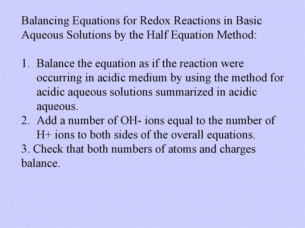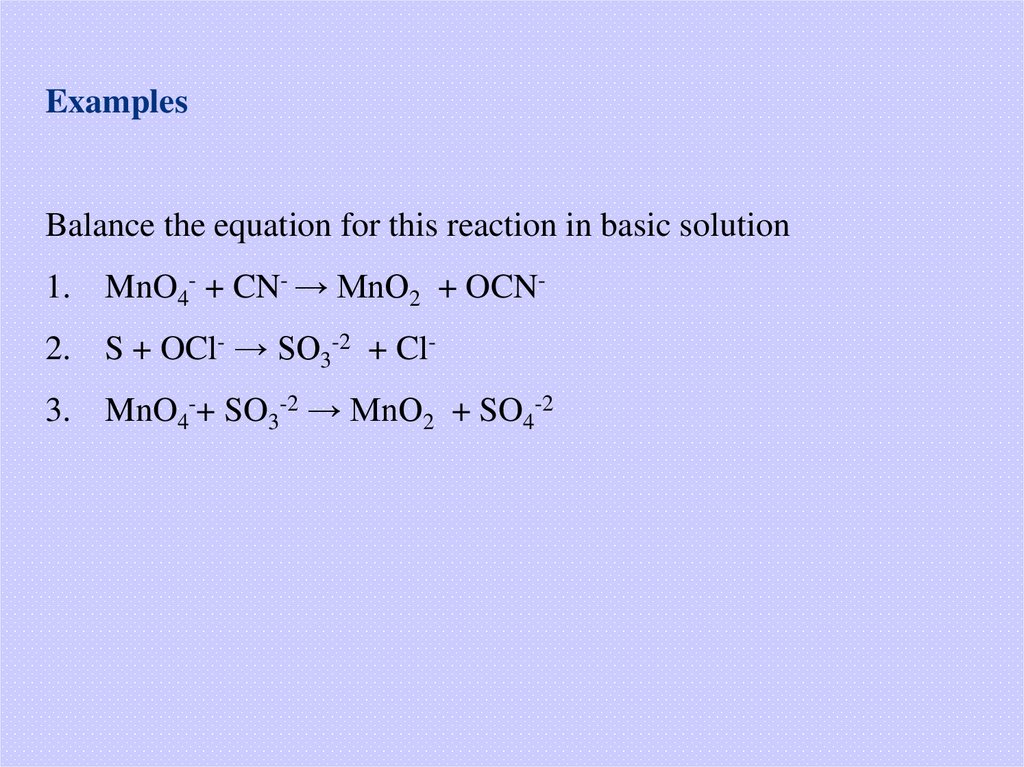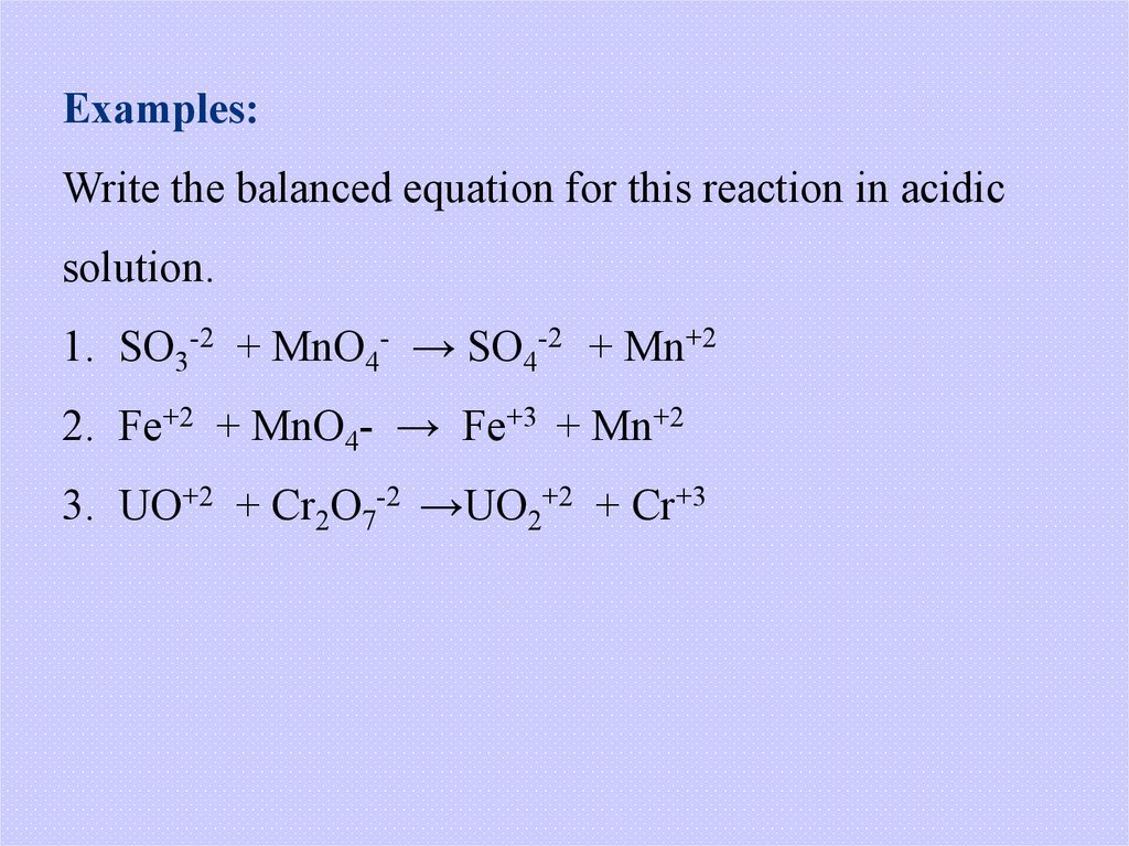 MnO4-+ SO3-2 → MnO2 + SO4-2