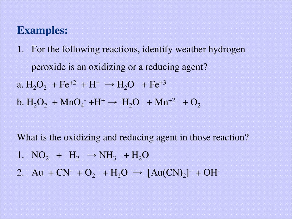 b. H2O2 + MnO4- +H+ → H2O + Mn+2 + O2