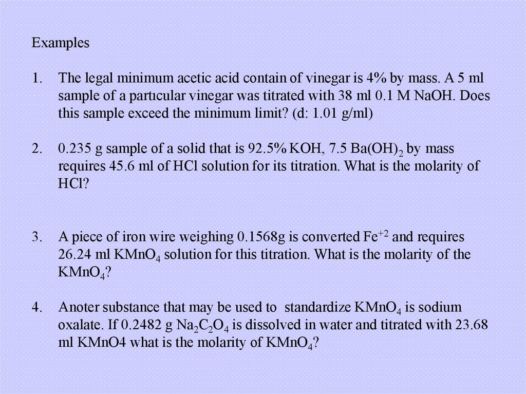 26.24 ml KMnO4 solution for this titration. What is the molarity of the