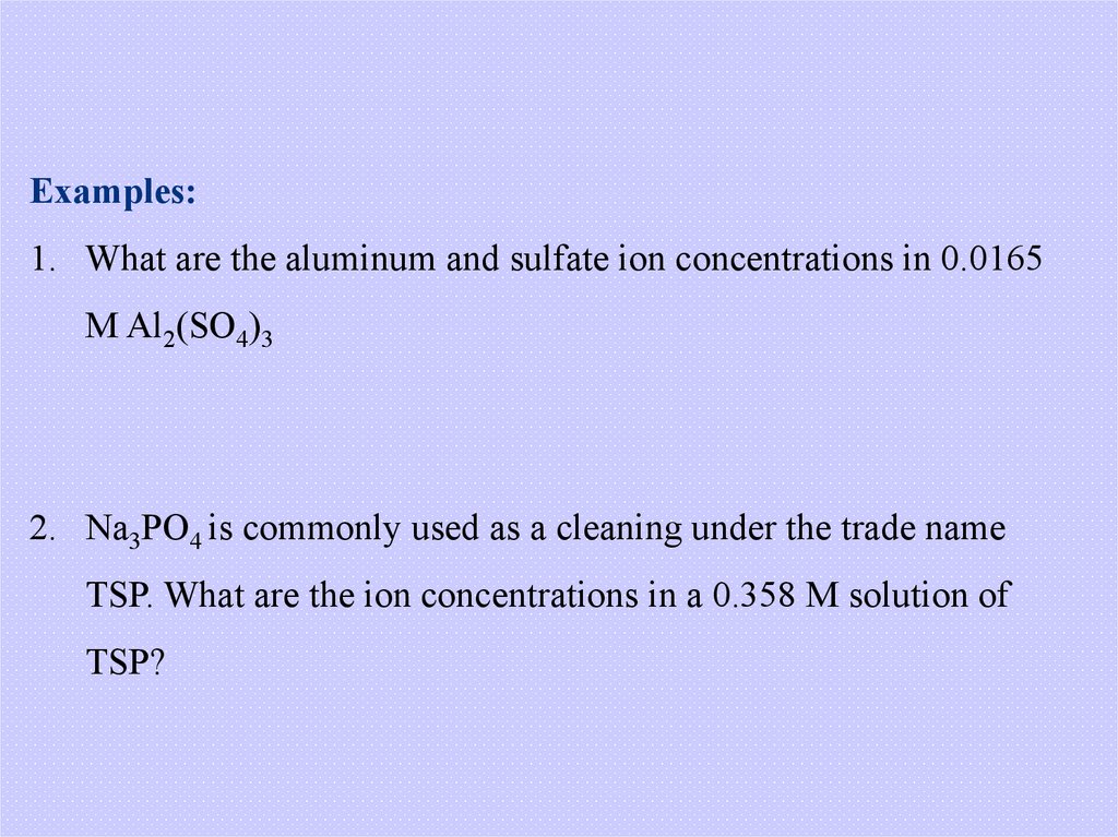 Examples:1. What are the aluminum and sulfate ion concentrations in 0.0165