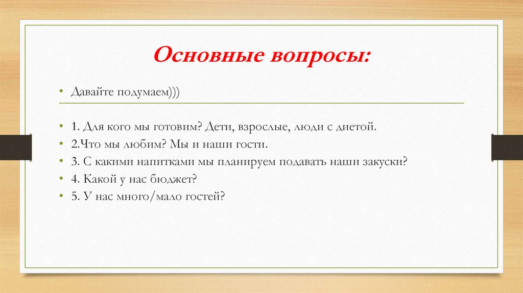 Основные вопросы:• Давайте подумаем)))