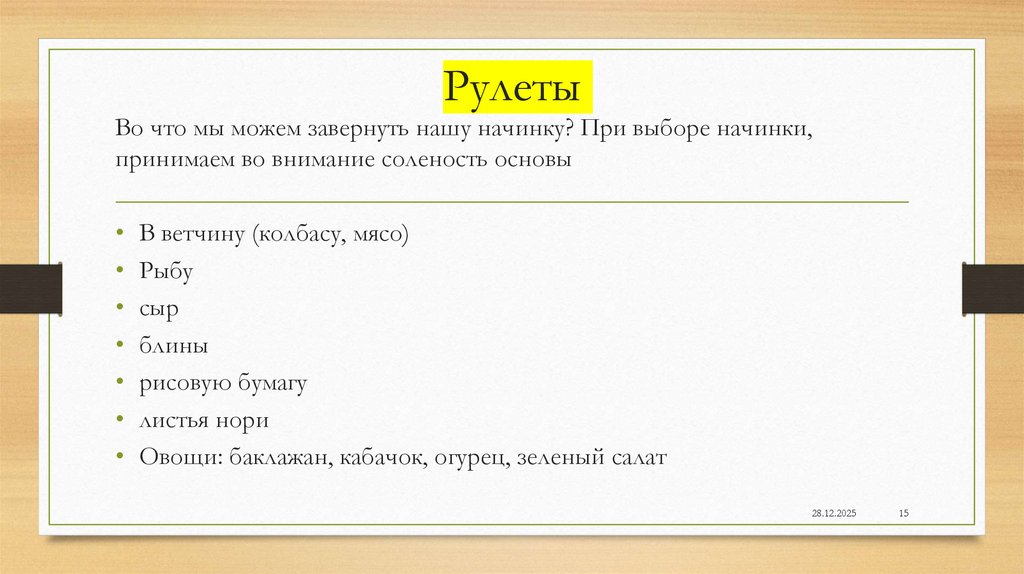 РулетыВо что мы можем завернуть нашу начинку? При выборе начинки,