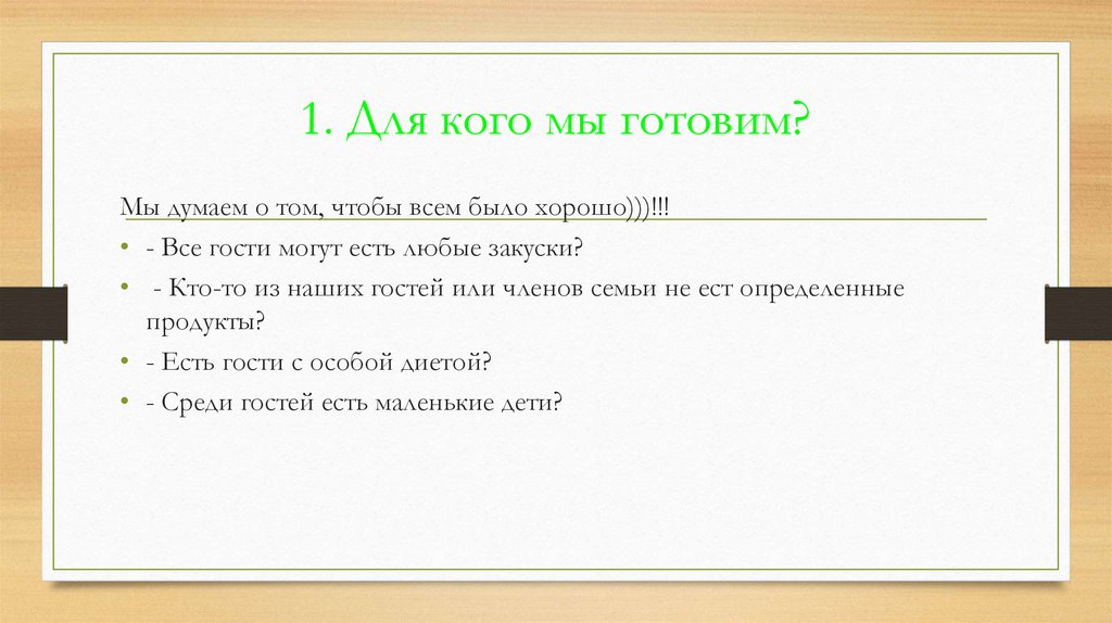 1. Для кого мы готовим?Мы думаем о том, чтобы всем было хорошо)))!!!