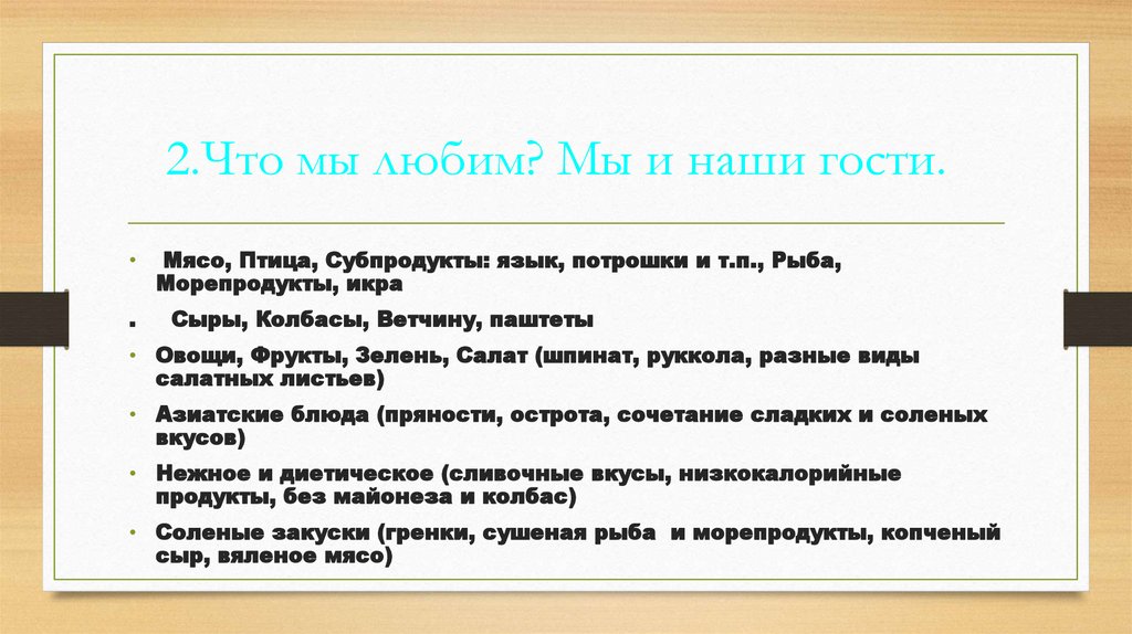 • 2.Что мы любим? Мы и наши гости.