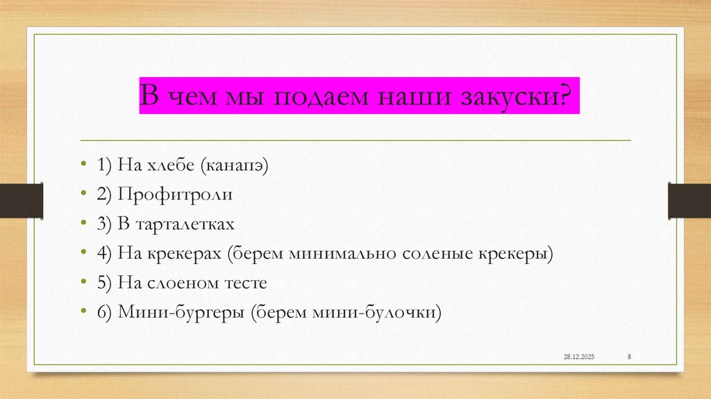 В чем мы подаем наши закуски?• 1) На хлебе (канапэ)