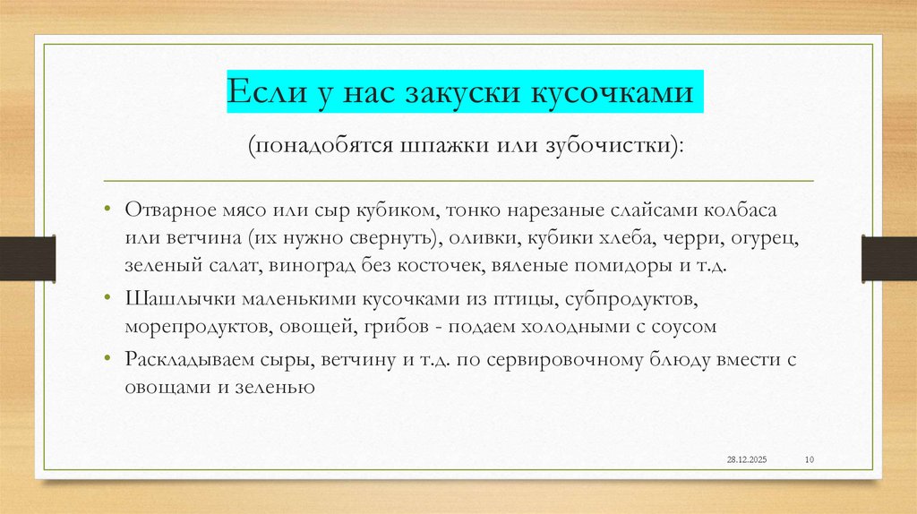 Если у нас закуски кусочками(понадобятся шпажки или зубочистки):