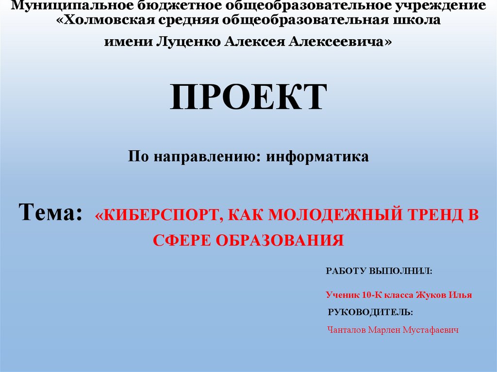 Тема: «КИБЕРСПОРТ, КАК МОЛОДЕЖНЫЙ ТРЕНД В