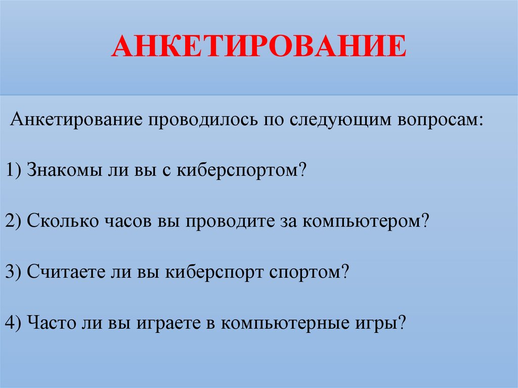 АНКЕТИРОВАНИЕАнкетирование проводилось по следующим вопросам: