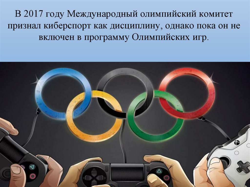 В 2017 году Международный олимпийский комитетпризнал киберспорт как дисциплину, однако пока он не