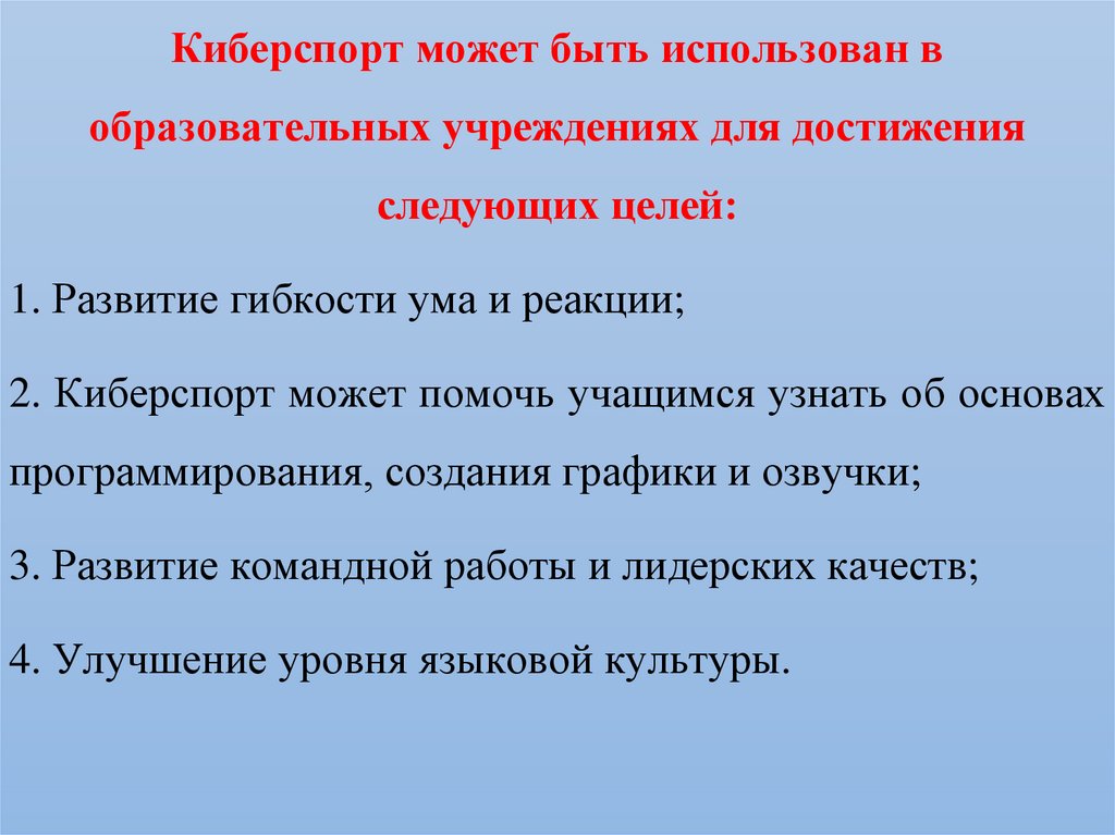 Киберспорт может быть использован вобразовательных учреждениях для достижения
