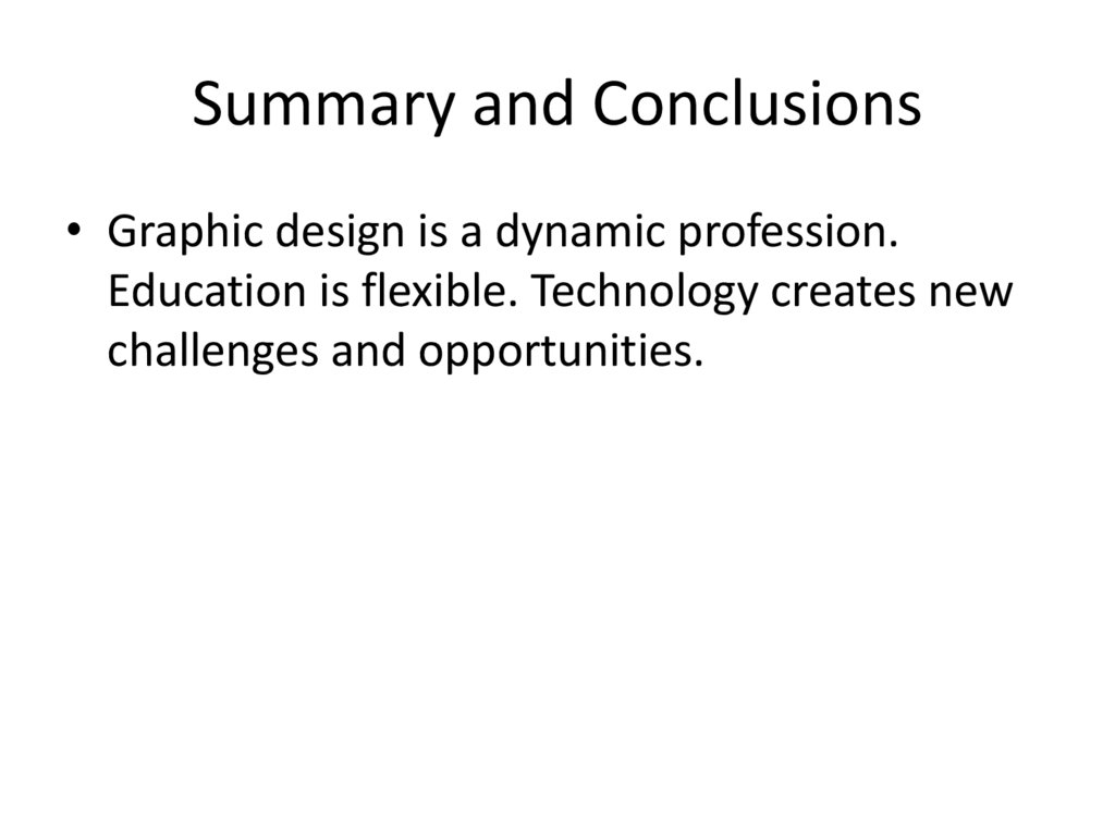 Summary and Conclusions• Graphic design is a dynamic profession.