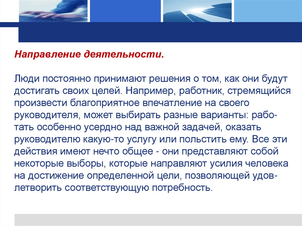 на достижение определенной цели, позволяющей удовлетворить соответствующую потребность.