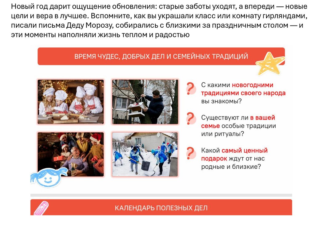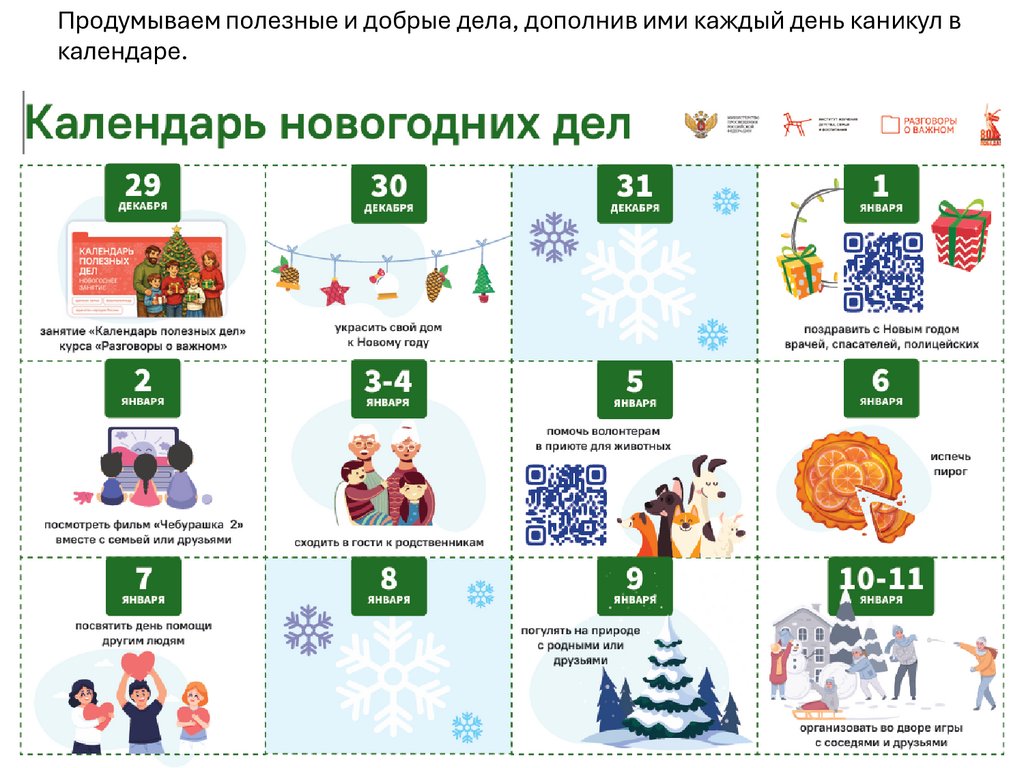 Продумываем полезные и добрые дела, дополнив ими каждый день каникул вкалендаре.