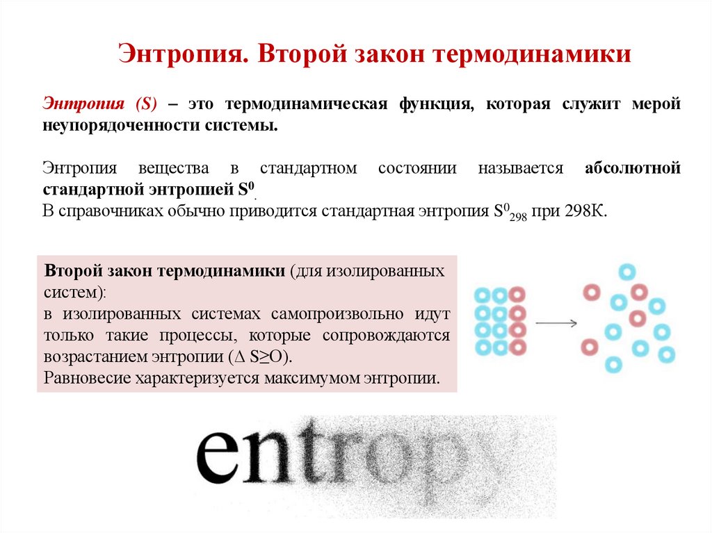 6. Понятие энтропии. Стандартная энтропия вещества. Энтропия