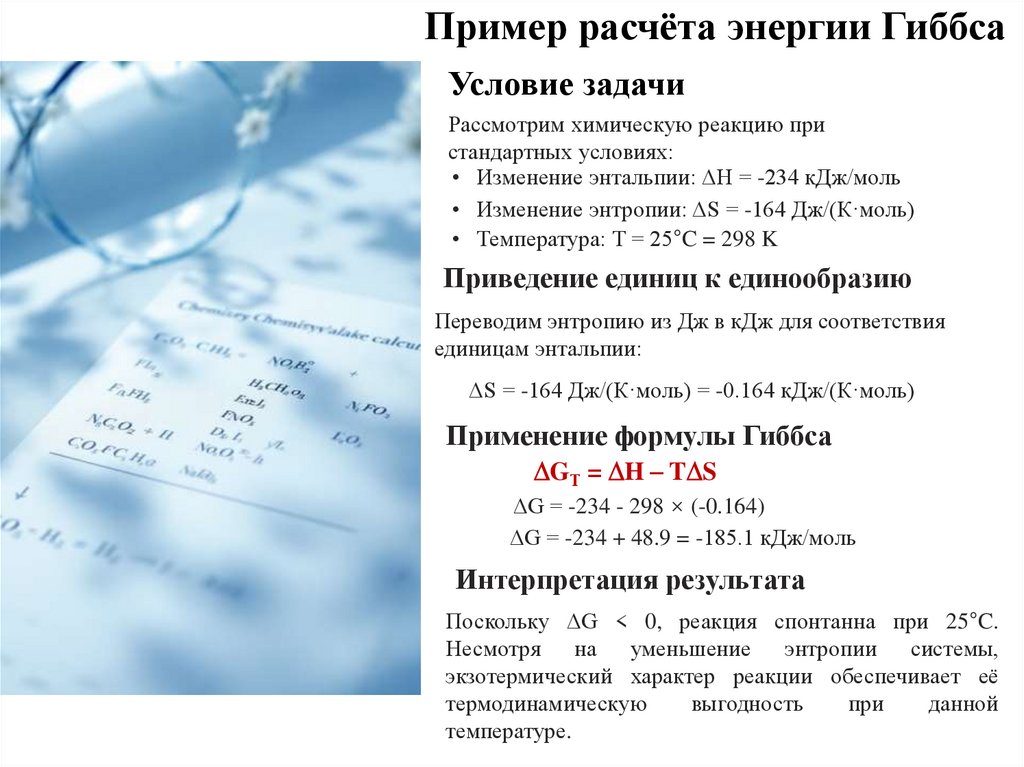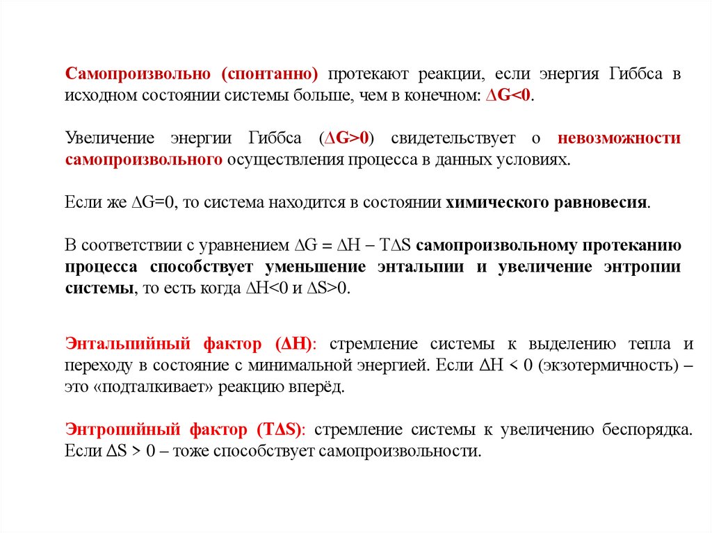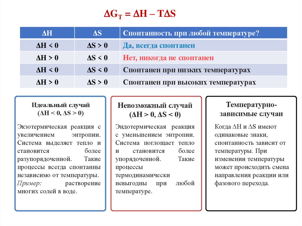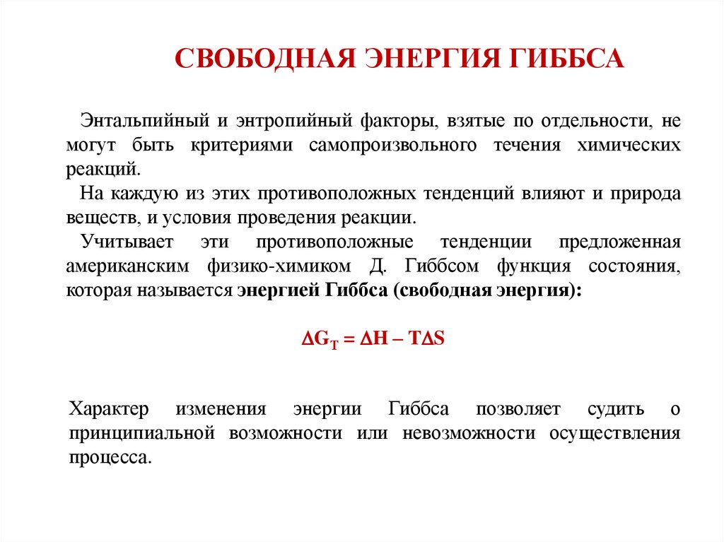 8. Свободная энергия Гиббса. Влияние энтальпийного и энтропийного