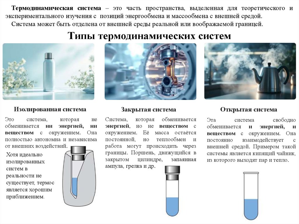Термодинамическая система – это часть пространства, выделенная для теоретического иэкспериментального изучения с позиций энергообмена и массообмена с внешней средой.