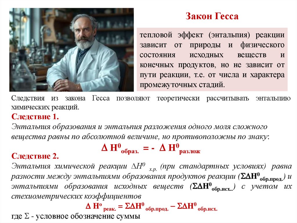 5. Закон Гесса. Следствия закона Гесса. Расчеты.