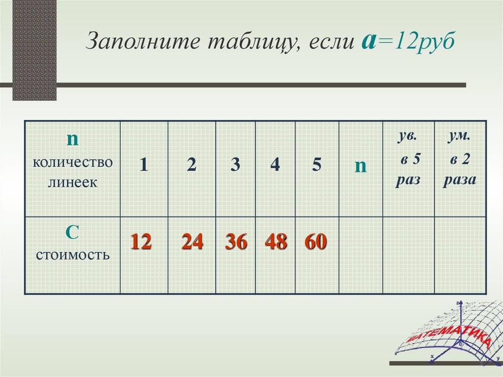 5. Заполните таблицу, если рабочий изготавливает 12 деталей за 1час