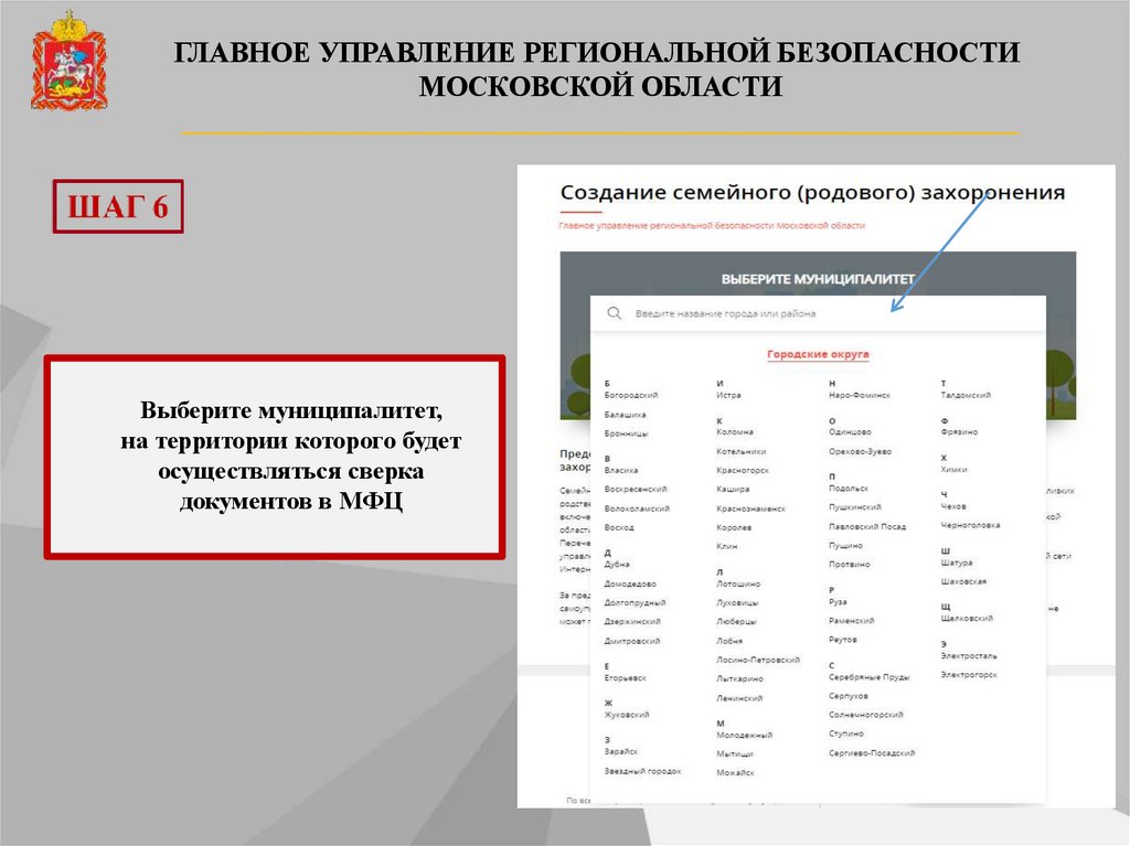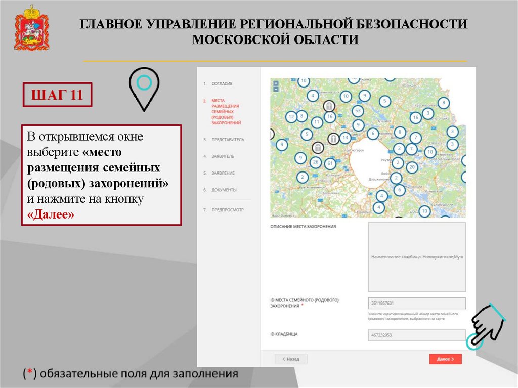 кладбищ, расположенных на территории Московской области, на которых предоставляются места