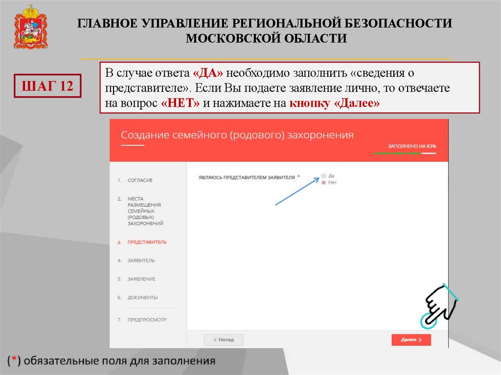 представителе». Если Вы подаете заявление лично, то отвечаете