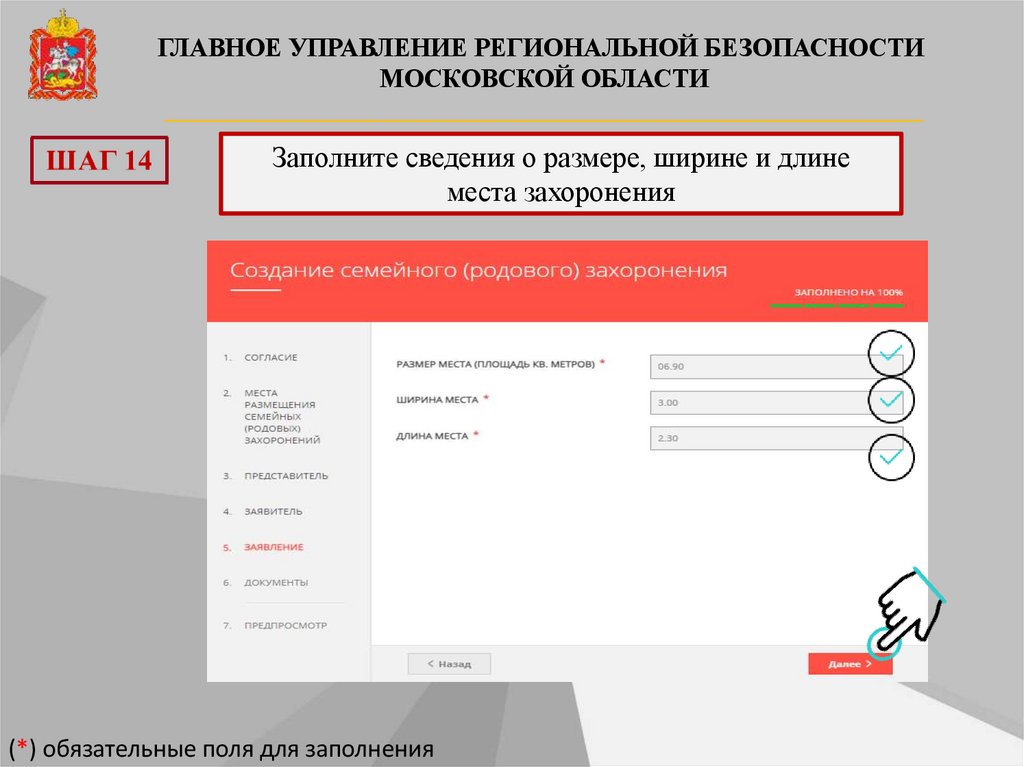 и факт ознакомления с описанными сведениями, нажать на кнопку «Далее»