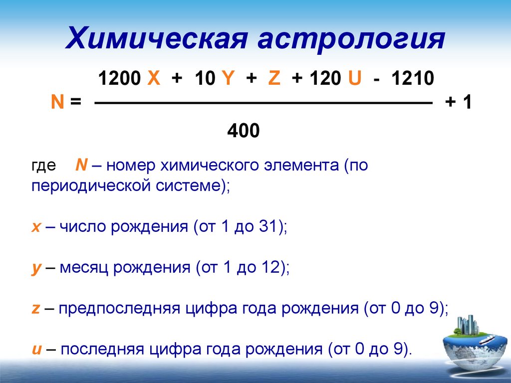 Химическая астрология1200 X + 10 Y + Z + 120 U - 1210