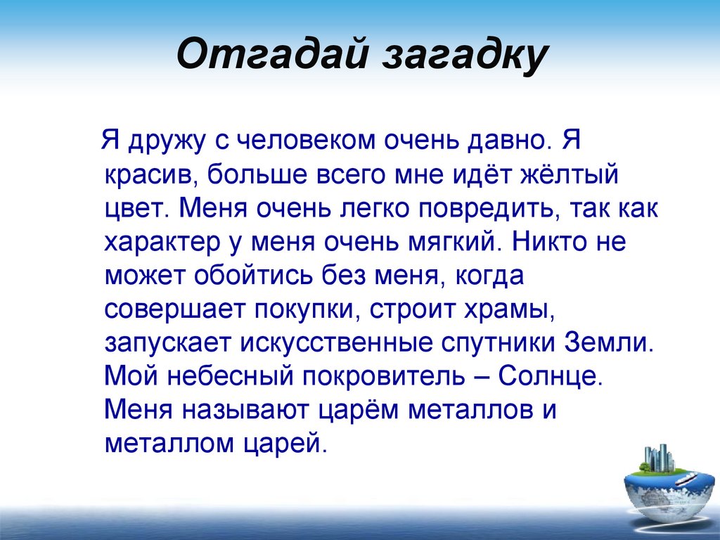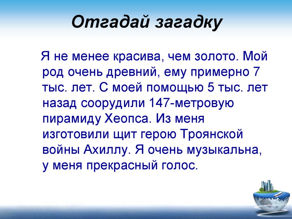 Отгадай загадкуЯ не менее красива, чем золото. Мой