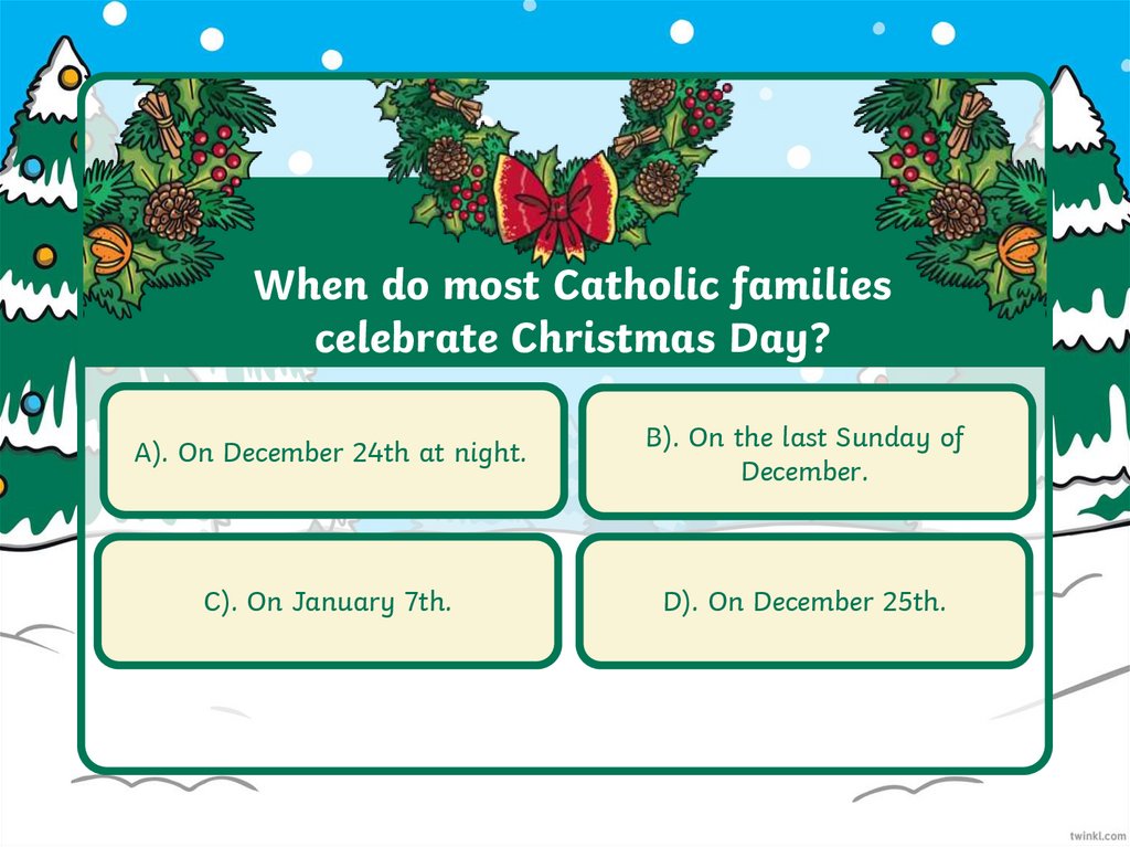 When do most Catholic familiescelebrate Christmas Day?